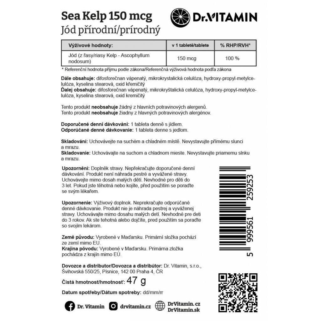 Sea Kelp 150 mcg (prírodný jód) - 90 tab.